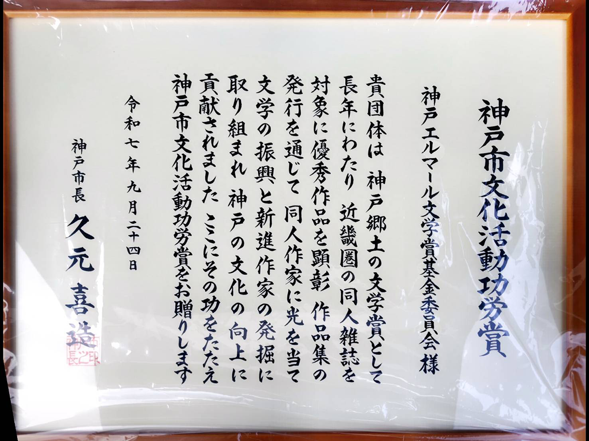 このたび、神戸エルマール文学賞基金委員会は神戸市文化活動功労賞をいただきました。